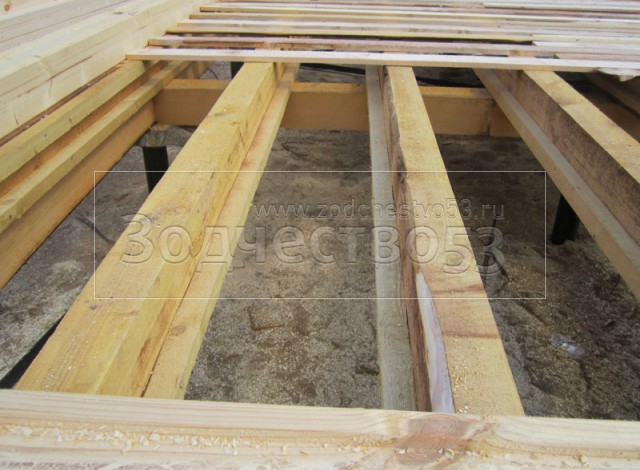 - Обрешётка крыши и черновые полы из черновой доски 20×100 или 20×150.
