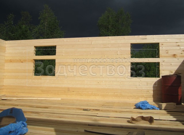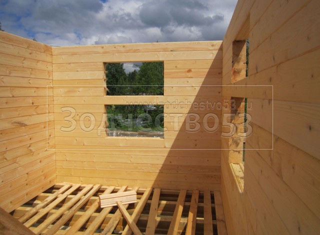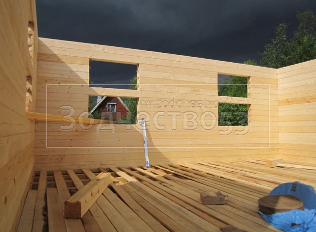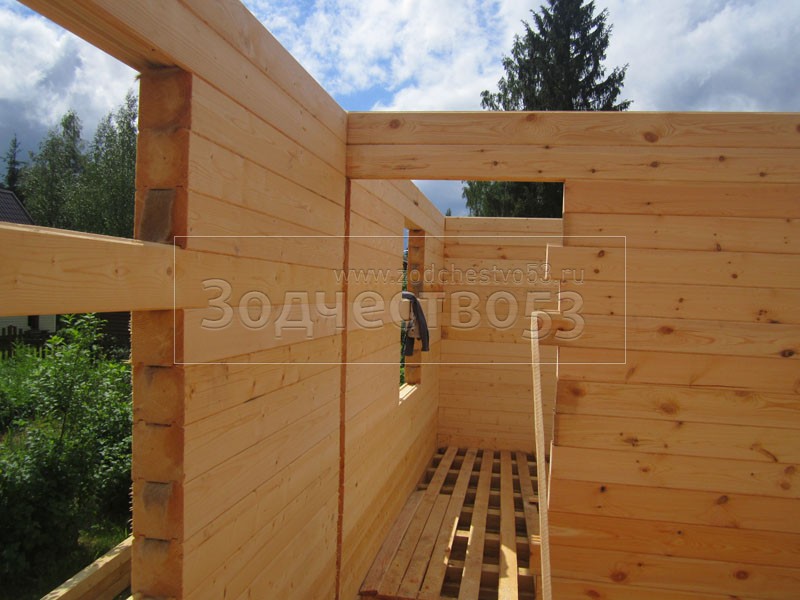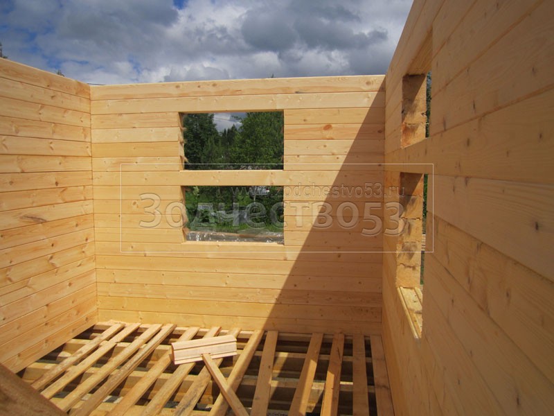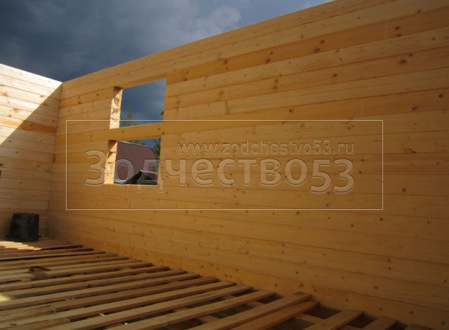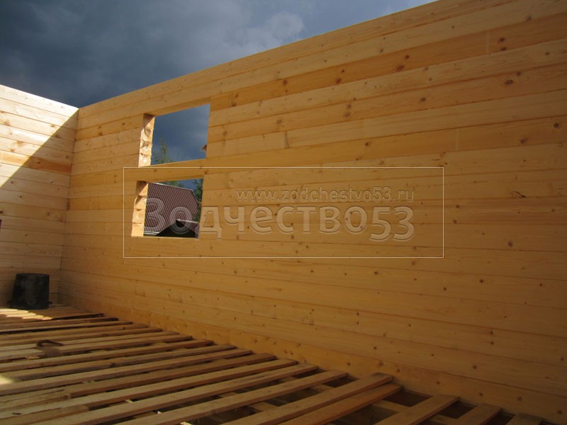 - Перегородки первого и второго этажа из профилированного бруса (прямой).