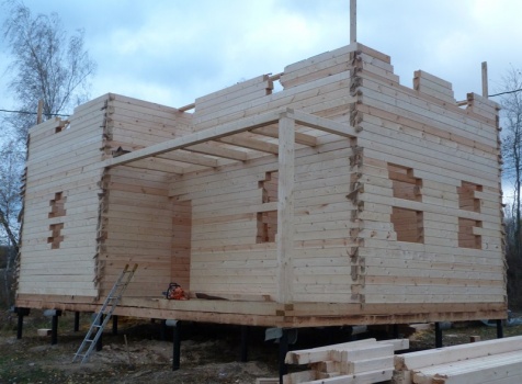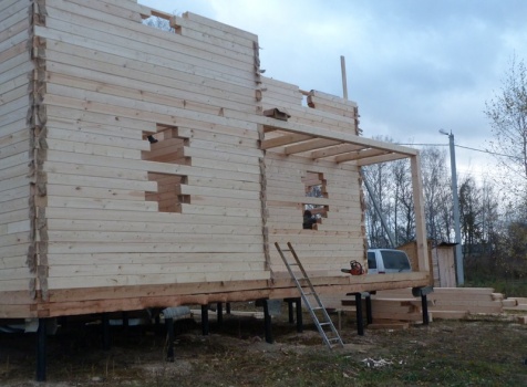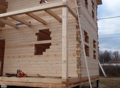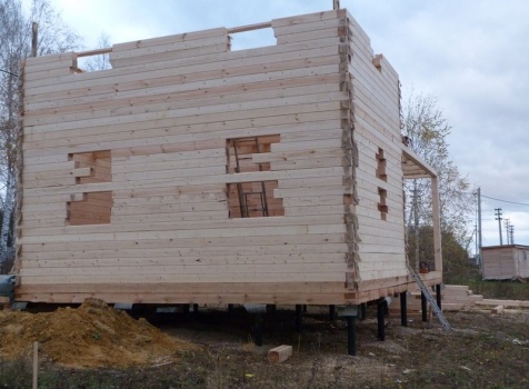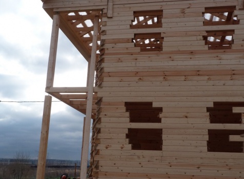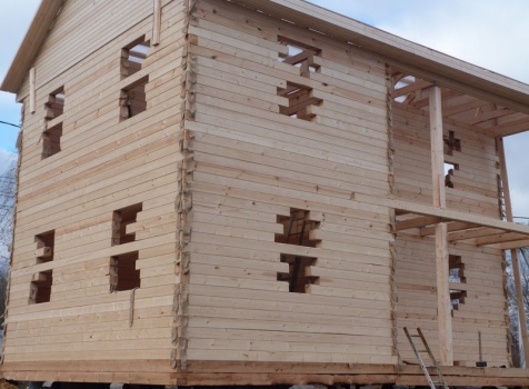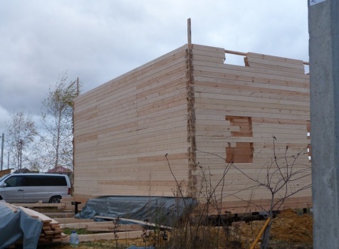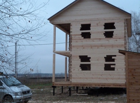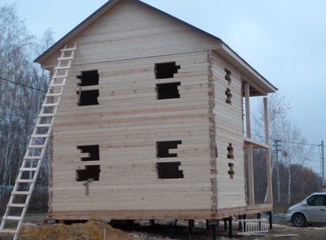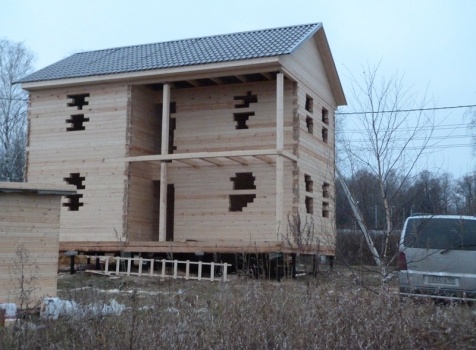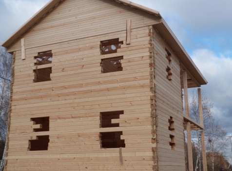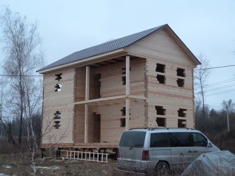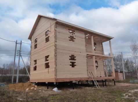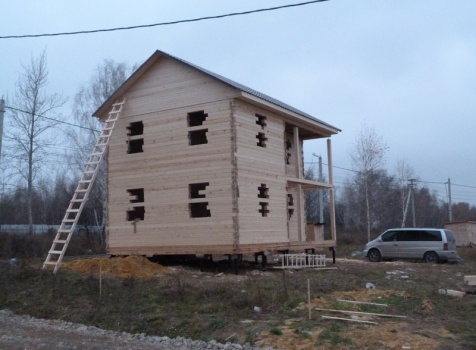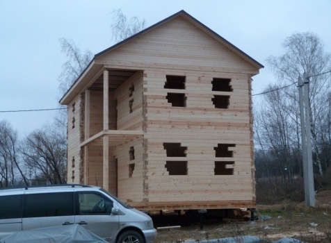 Двухэтажный сруб дома общими размерами 6×9 из профилированного бруса 150×150 под двухскатной крышей. Построен: Московская область, село Кривцы.