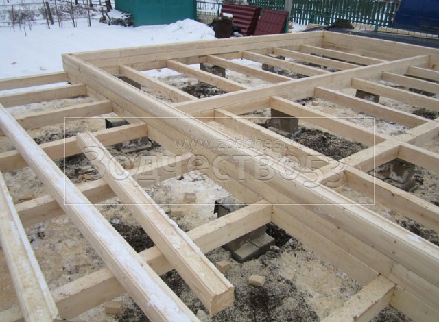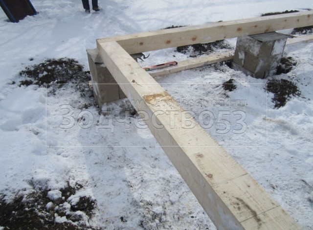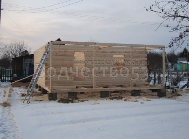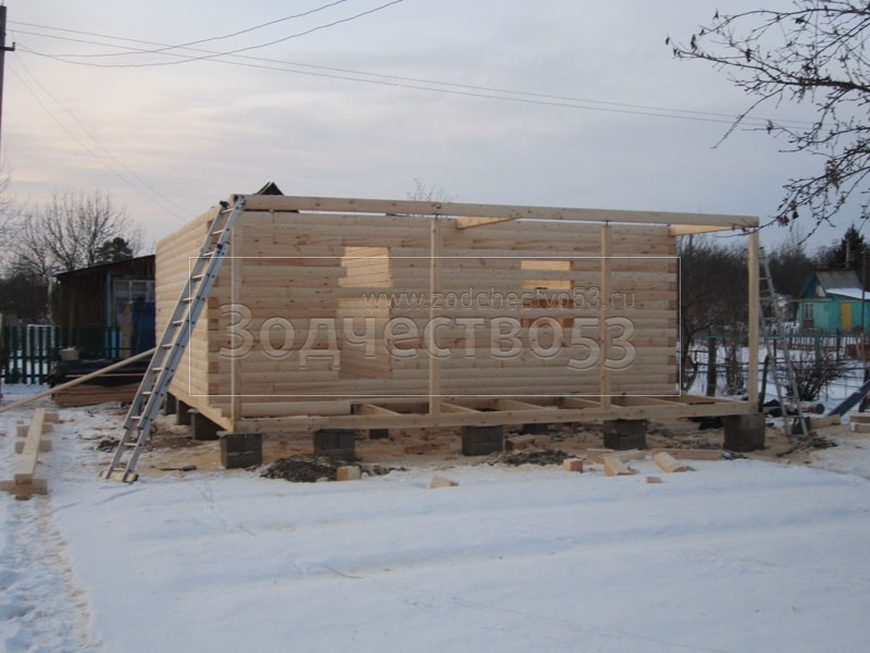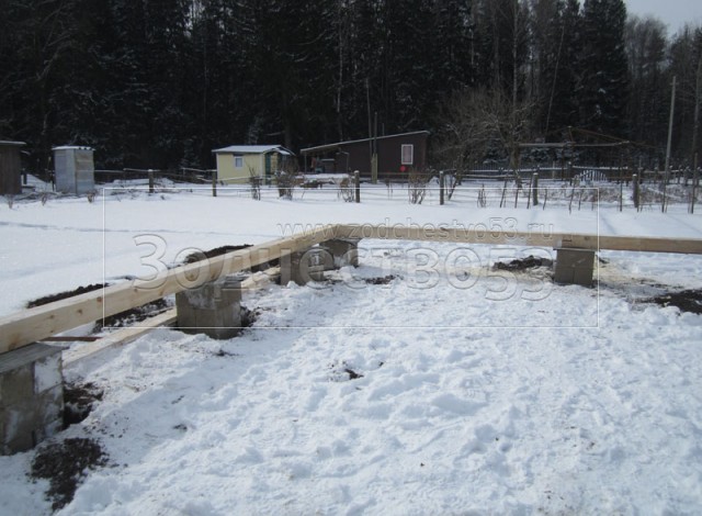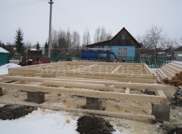 - сруб на опорно-столбчатом фундаменте (20 тумб по 6 блоков в каждой)