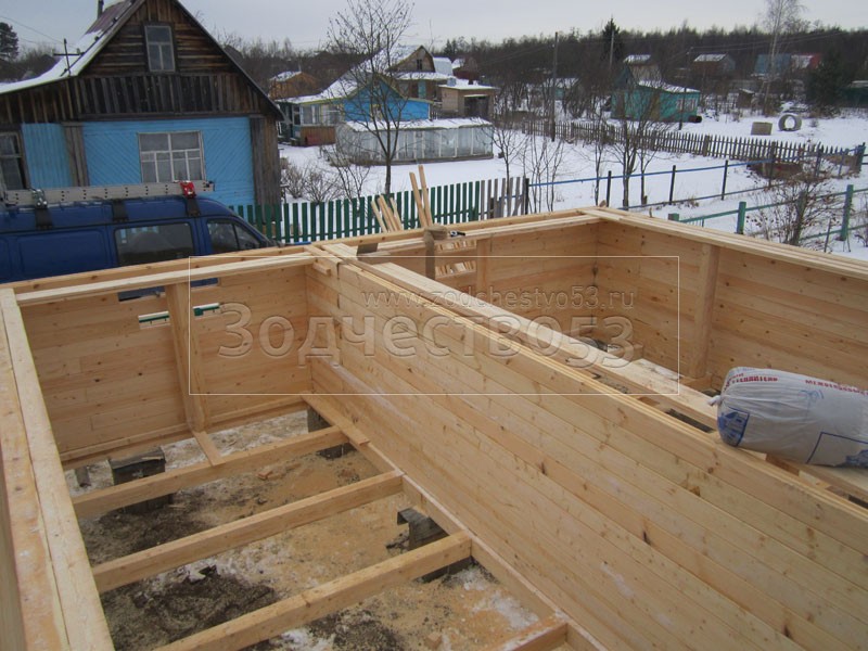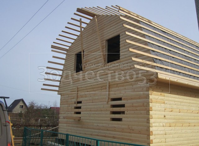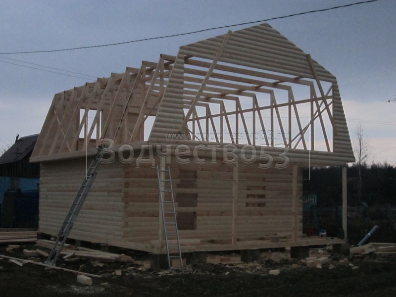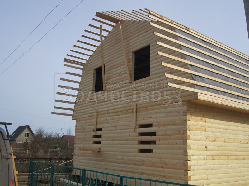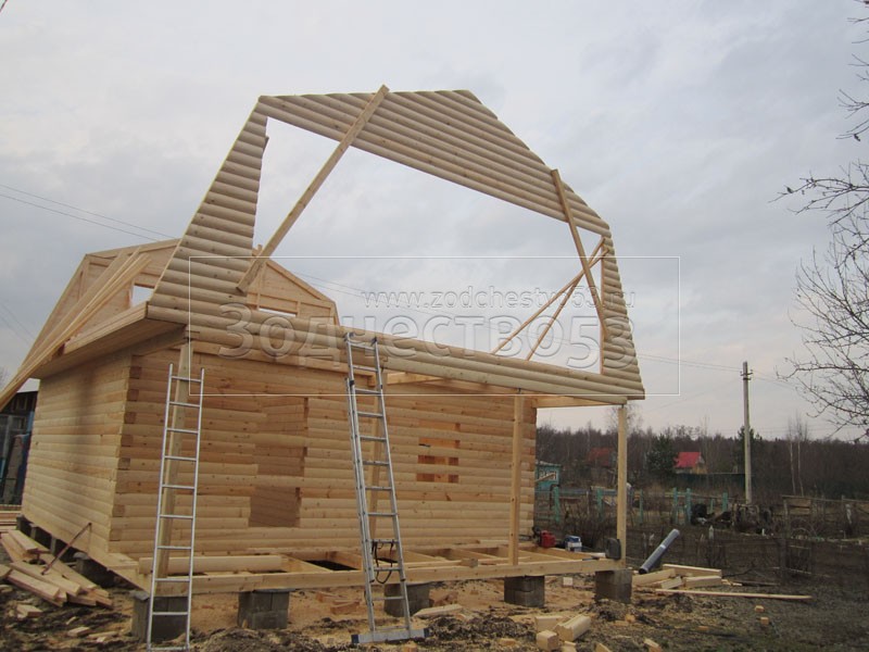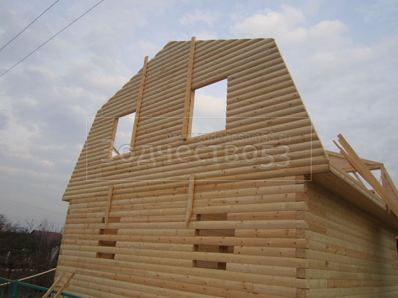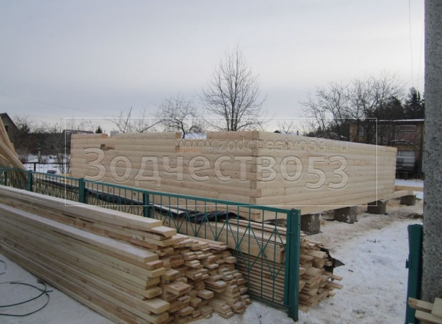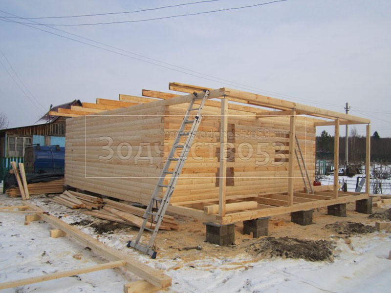 Строительство сруба 7х9 м. (7х7 м. - сруб, 2х7 м. - веранда, + балкон под общей крышей).