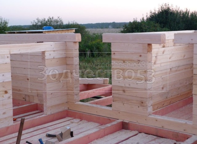 - Сборка сруба в тёплый угол.