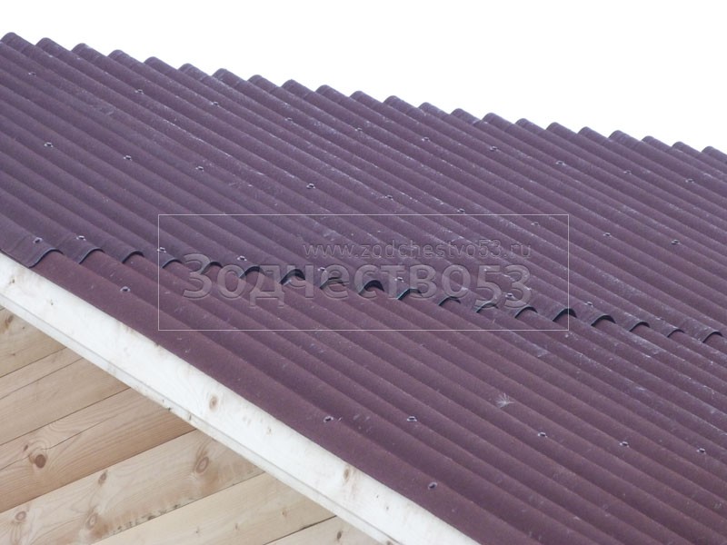 - Покрытие крыши — ондулин (бордо).