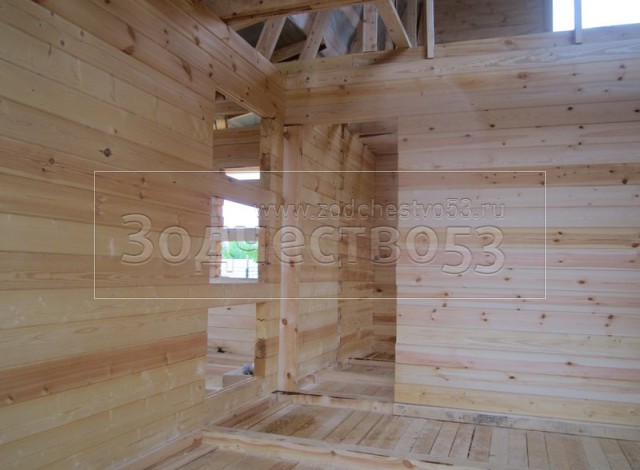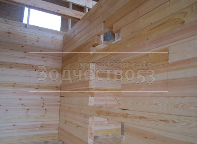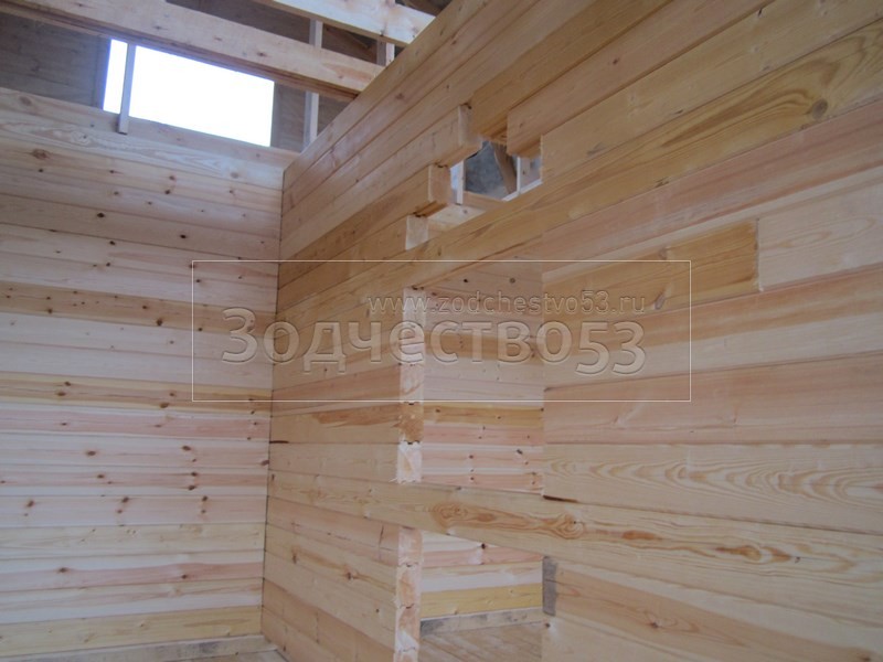 - Перегородки из профилированного бруса 100×150 (сборка на нагеля в тёплый угол).