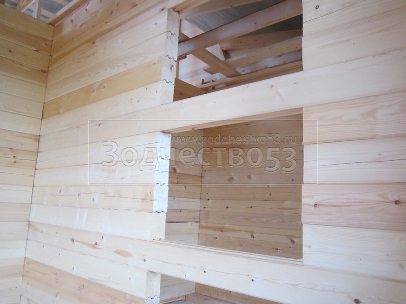 - Стены: профилированный брус 150×150, 18 венцов, высотой 2.50.