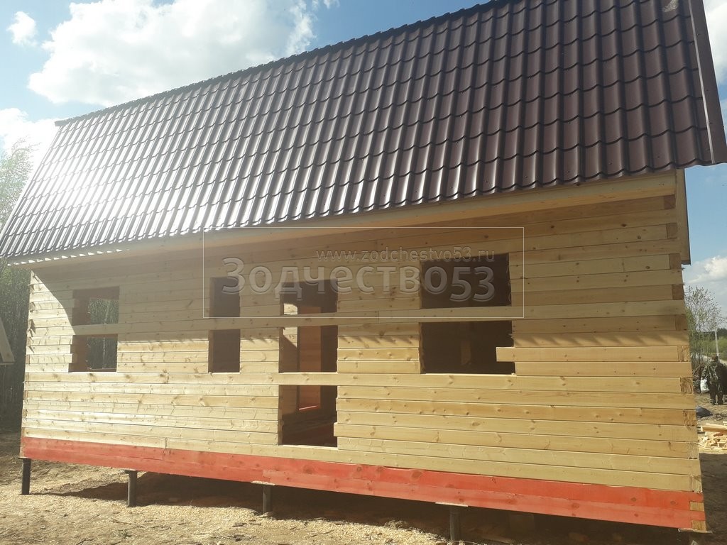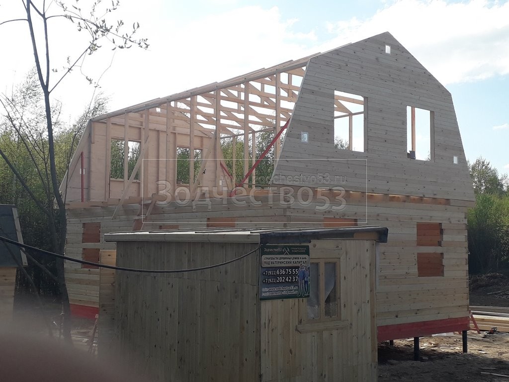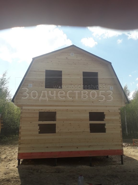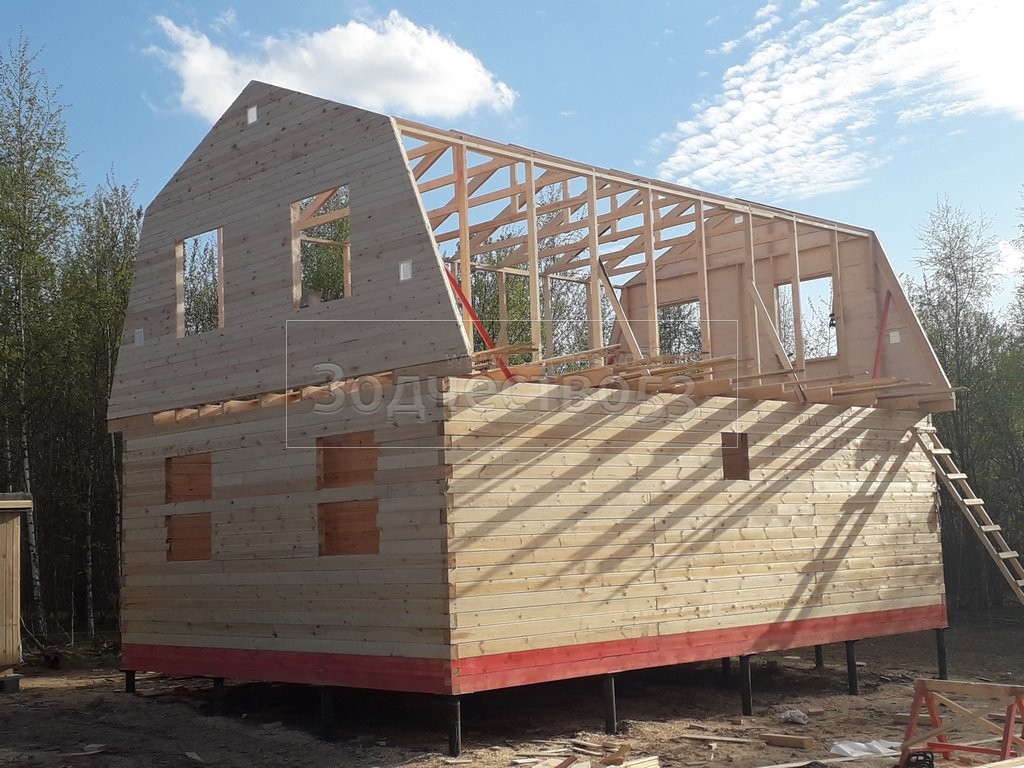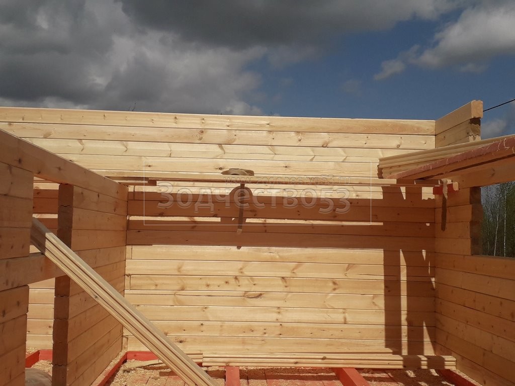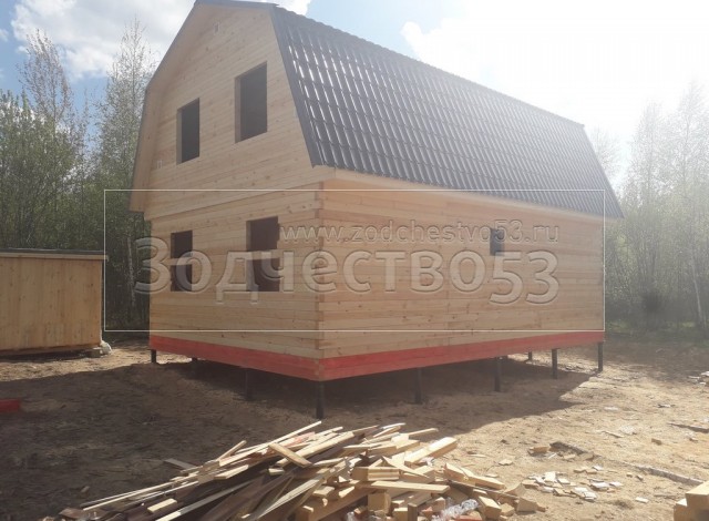 Сруб дома ,общими размерами 6.0*9.0 из профилированного бруса 100*150(прямой) под ломанной крышей.Объект построен: Московская обл., Раменский р-он, с/п Ганусово, д.Вишняково, ул. Малиновая ,уч. 15.