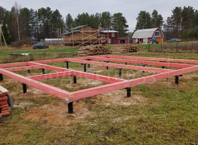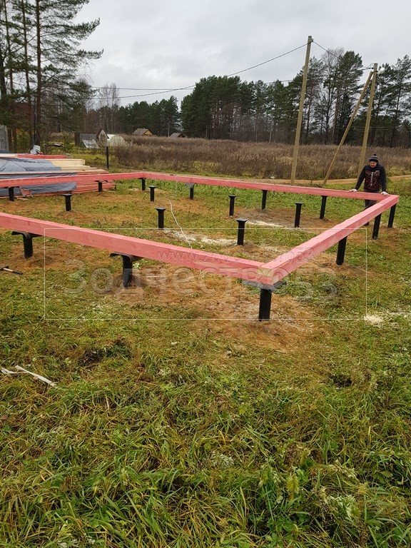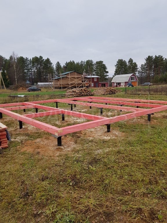 - Фундамент: свайно-винтовой - 20 свай ( снаружи свая покрывается антикоррозийным составом до монтажа ,ствол бетонируется цементом