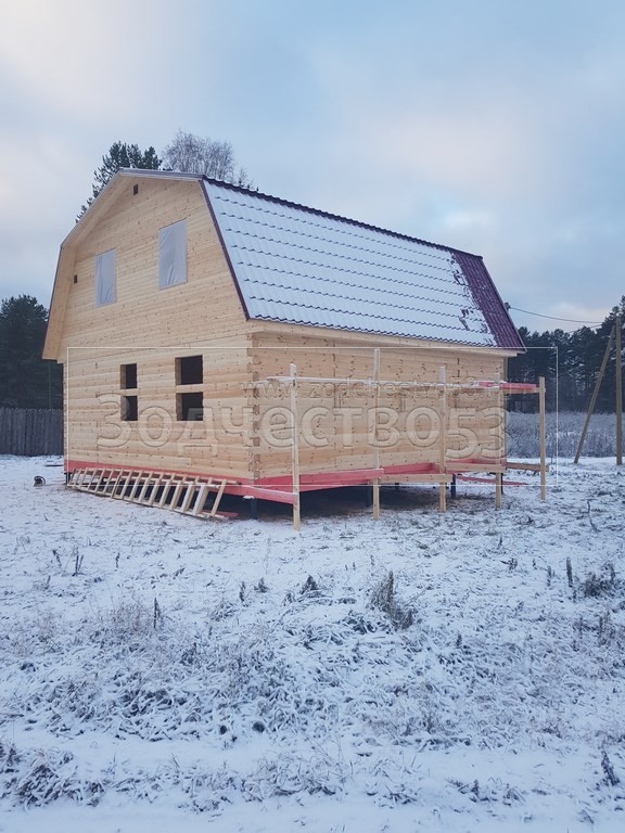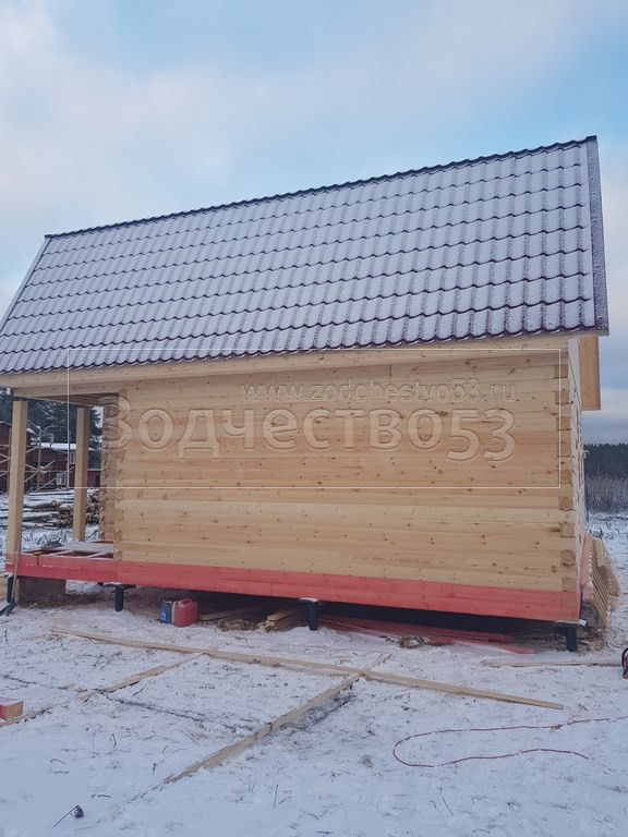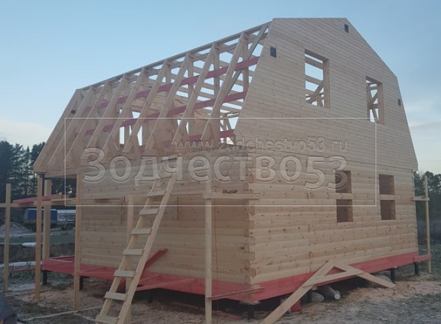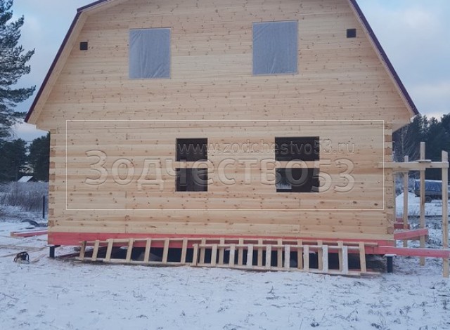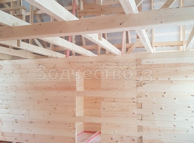 - Фронтоны : из бруса 150*40,обшиты снаружи вагонкой камерной сушки класс В ,высота фронтона 3.2