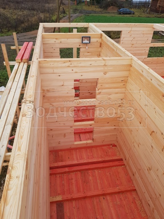 - Перегородки 1 этажа: профилированный брус 140*90( прямой)