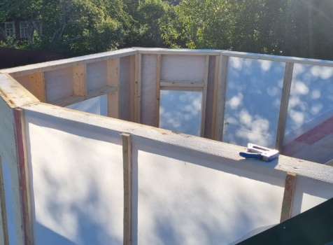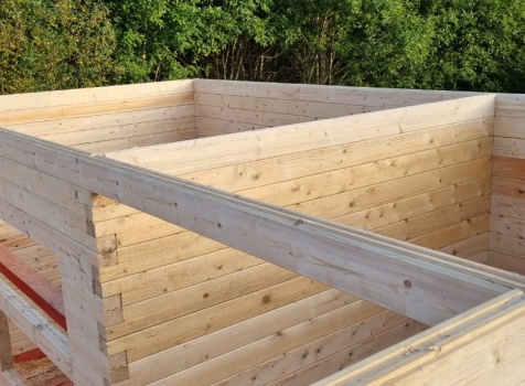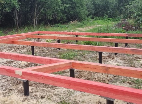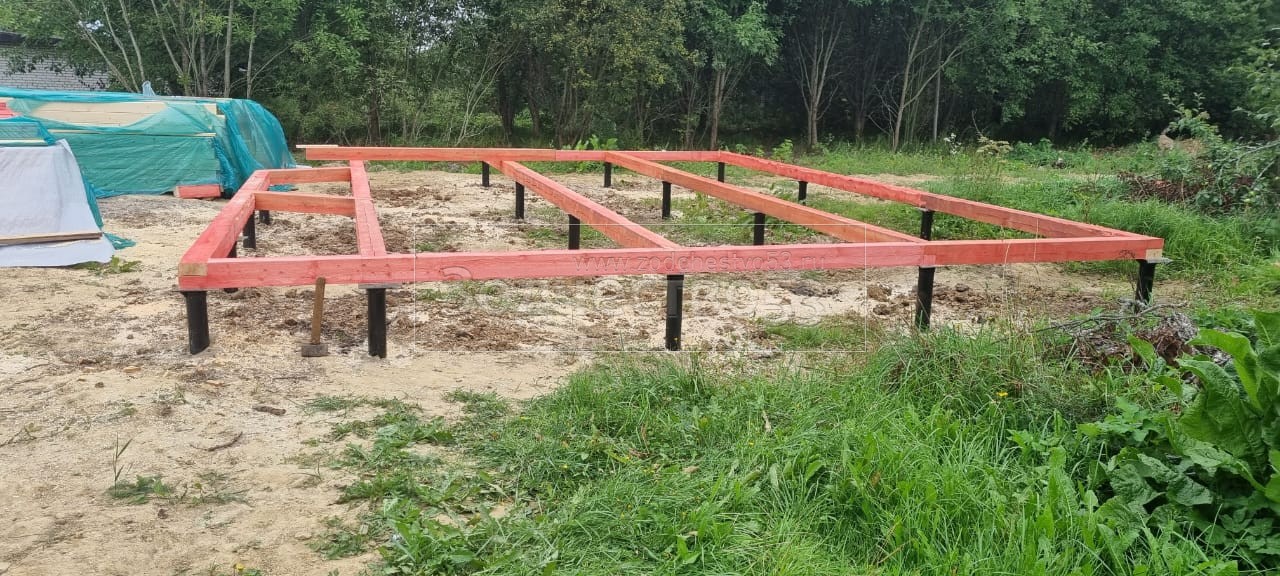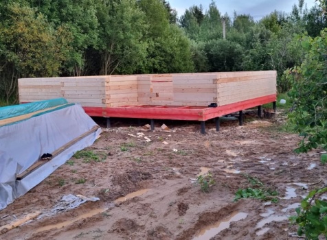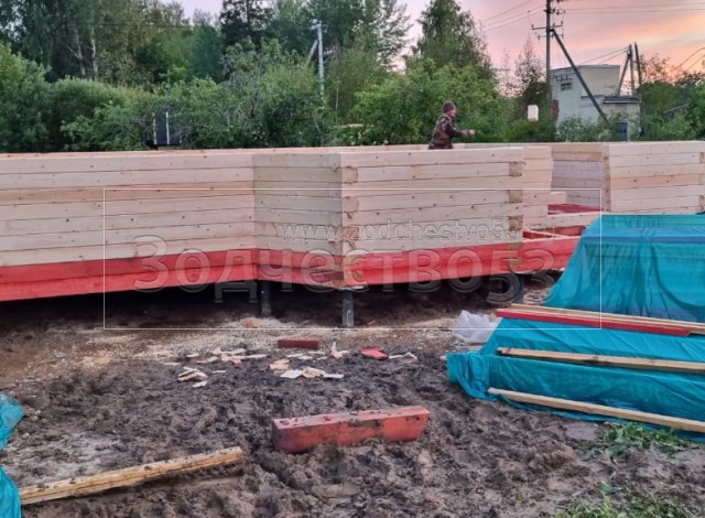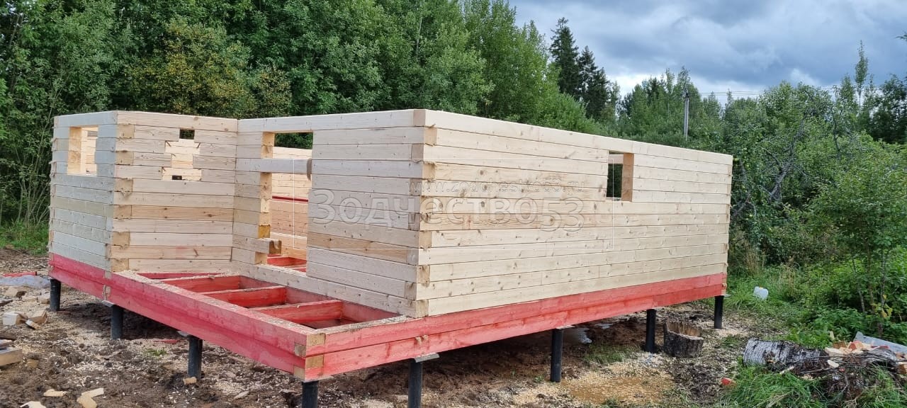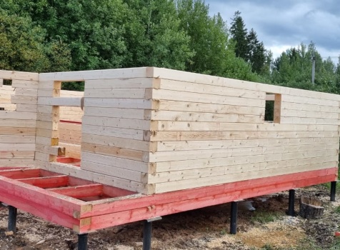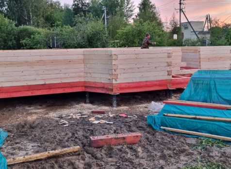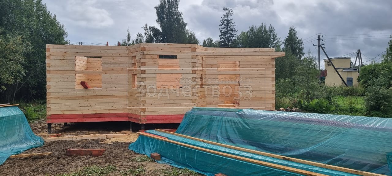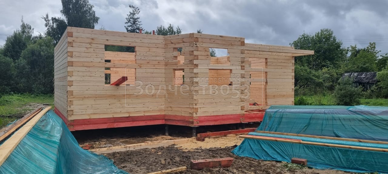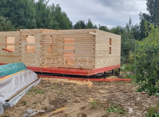 Постройка сруба дома общими размерами 7.0×9.0 (6.0×9.0 из профилированного бруса Естественной влажности 140×140 (прямой) и 1.0×3.0 крыльцо под общей двухскатной крышей с эркером 1.0×3.0 под отдельной крышей лучами ).