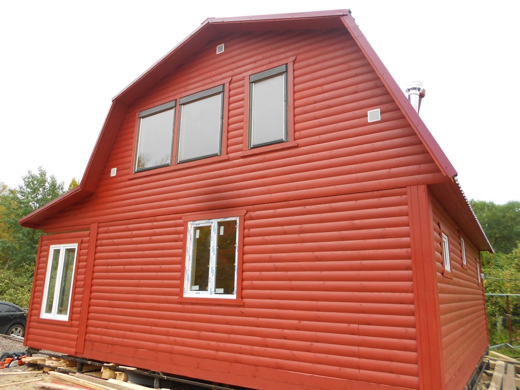 - Геометрическая точность готовых комплектов. Производство в точном соответствии технологическим стандартам обеспечивает безупречное качество и идеальные размеры заготовок. Материал не требует доработки в процессе строительства, что экономит время и денежные средства. В сравнении с клееным брусом, дома из сухого профилированного бруса собираются быстрее. Строительство коттеджа средних размеров занимает в среднем 1-3 недели.