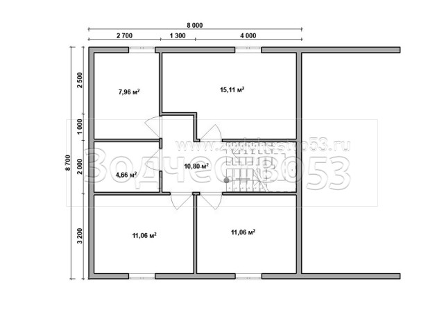 Окна: 1,0х1,2 м., 0,6х1,2 м., 0,6х0,6 м., 1,5х1,2 м. (по проекту)