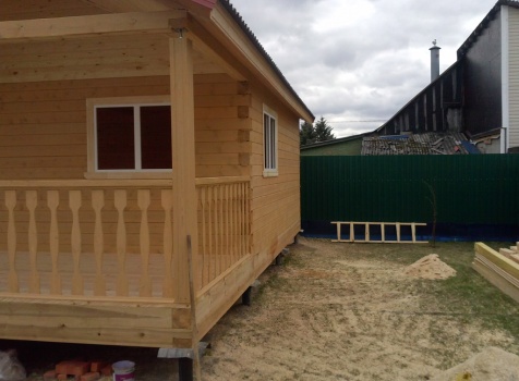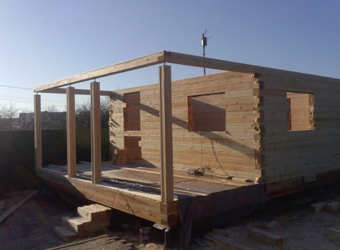 Одноэтажная баня общими размерами 5,5х7,8 (5,5х5,5 из профилированного бруса 150х150 и 2,3х5,5 открытая терраса). Место строительства: Московская область, д. Юдино