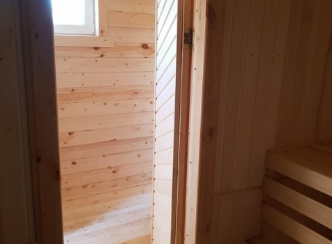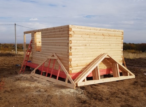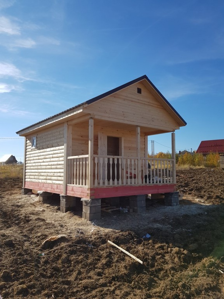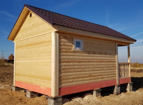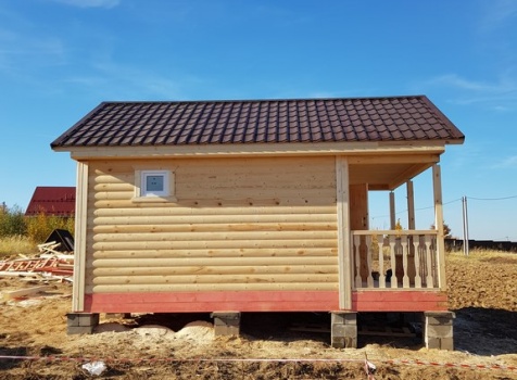 Одноэтажная баня, общими размерами 6.0*4.0 (4.5*4.0 из профилированного бруса 150*150 и 4.0*1.5 открытая терраса под общей двухскатной крышей).