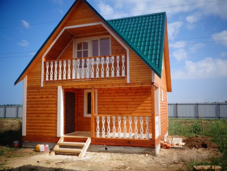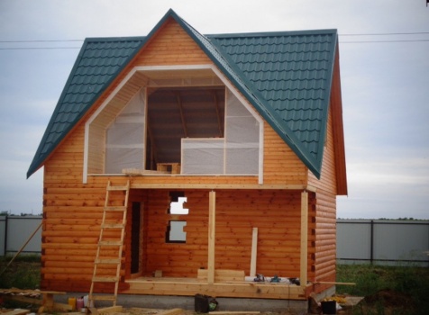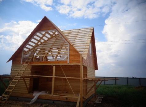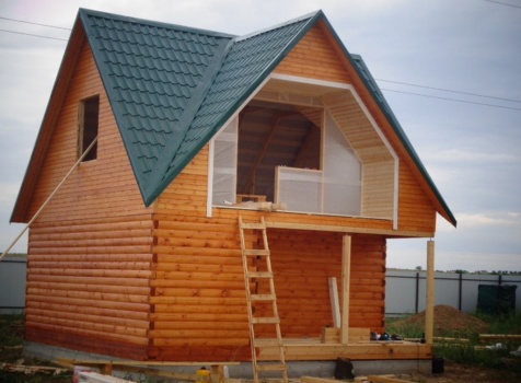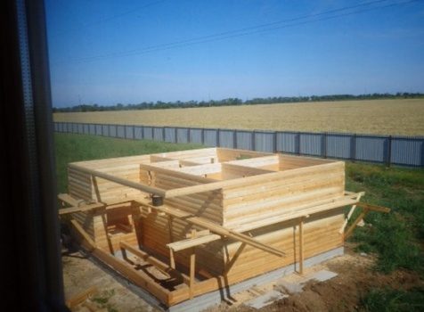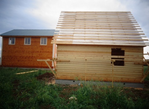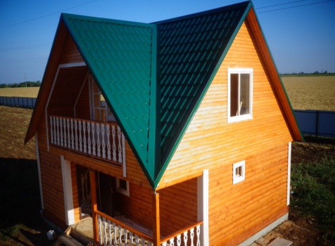 Баня 6,0×6,0 из профилированного бруса 100×150 под двухскатной крышей с тремя каркасно-щитовыми фронтонами. Построена в респ.Крым, Бахчисарайский