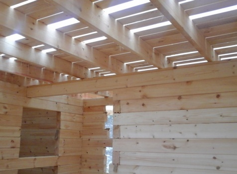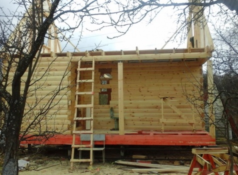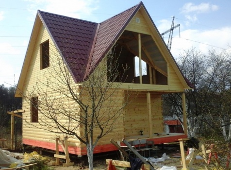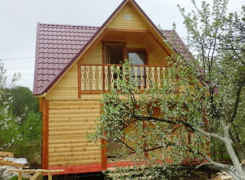 Баня 6×6 м. из профилированного бруса 100×150 под двухскатной крышей с тремя фронтонами построена в Калужской области, г. Тарусса.