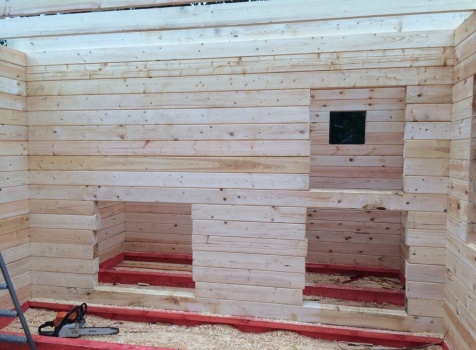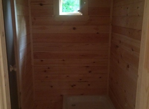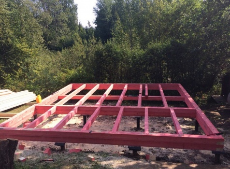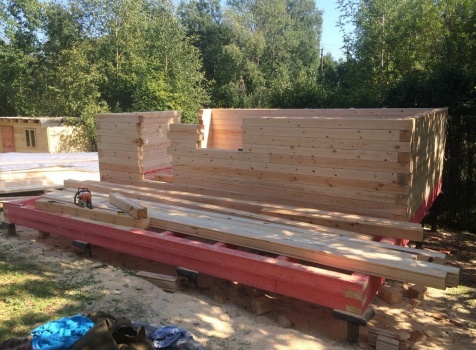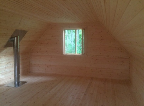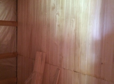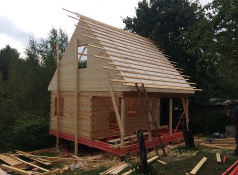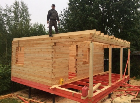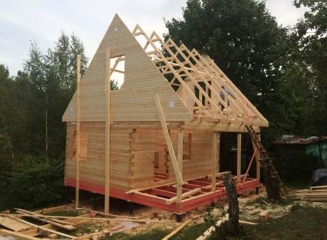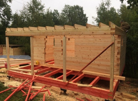 Баня, общими размерами 6.0*6.0 (6.0*4.0 из профилированного бруса 150*150) и открытая терраса 2.0*6.0 под общей двухскатной крышей. Объект построен: ЛО, Всеволожский р-н, Грузино, СНТ Красный Маяк.