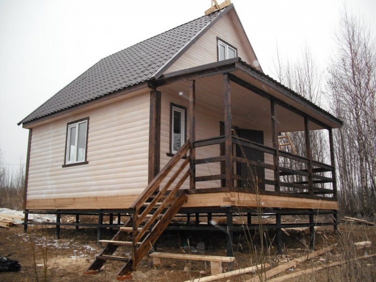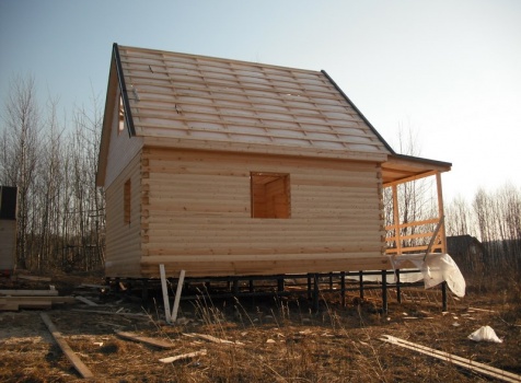 Баня общими размерами 6×8 (6×6 из профилированного сухого бруса 150×150 под двухскатной крышей и 2×6 открытая терраса под отдельной односкатной крышей)/ Построена: Московская область, г. Дмитров