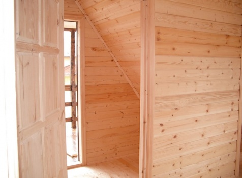 Второй этаж размерами 4.5×6, каркасно-щитовой, обшит вагонкой класса «В» 16 мм., с утеплением в 150 мм. (Урса) с проложкой парогидроизоляции в два слоя.