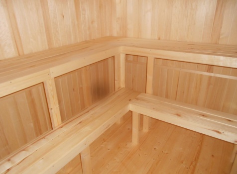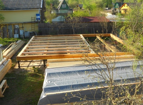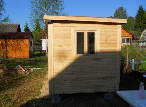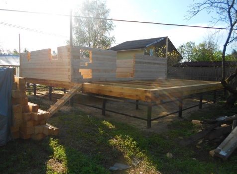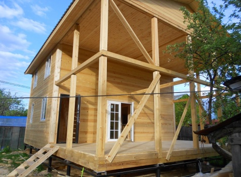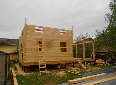 Баня общими размерами 8×10 (6×8 из профилированного бруса 150×150 и открытая терраса 4×8) построена в Ленинградской области, Всеволожский р-н, СНТ Скорая помощь.