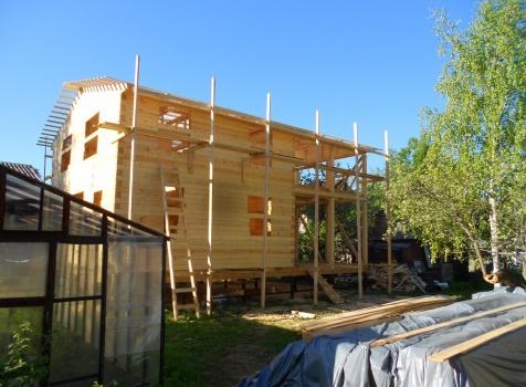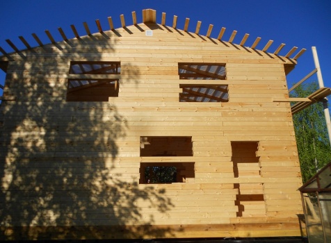 стены профилированный брус 150×150 (прямой), сборка на деревянные нагеля