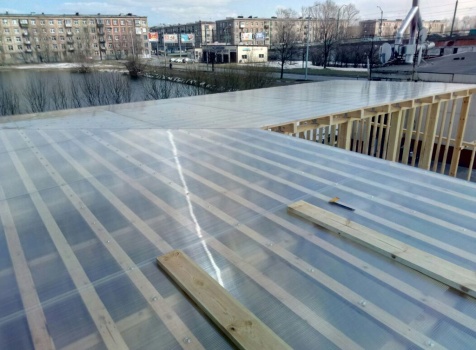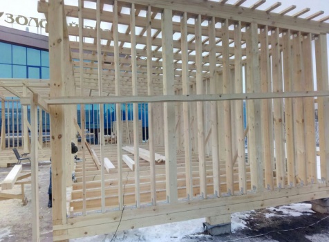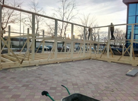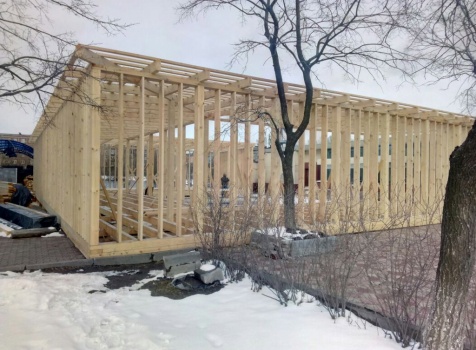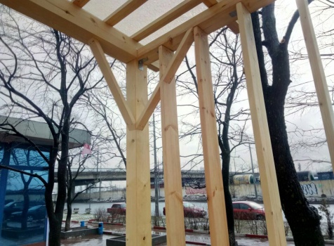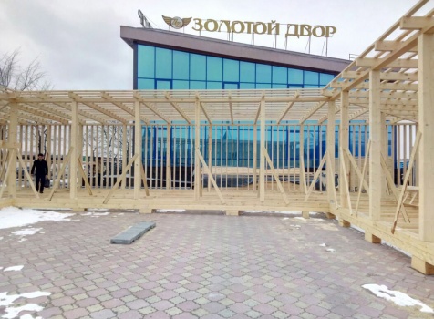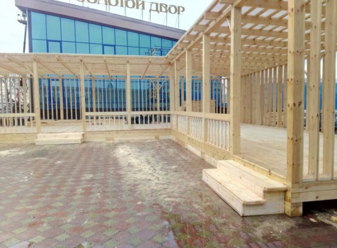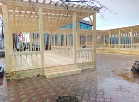 Беседка каркасно-щитовая 21,4х14,4 м. (буквой П) под односкатной крышей.
