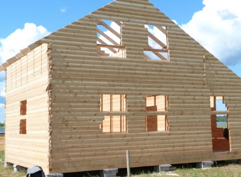 Фронтоны из профилированного бруса 100×150, высотой 3.0 метра сборка на гвозди в тёплый угол с проложкой льнополотна.