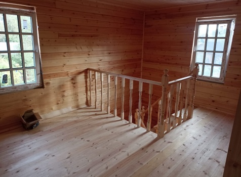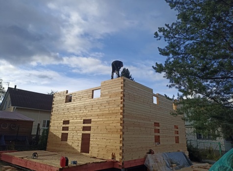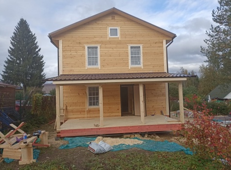 Постройка двухэтажного дома общими размерами 12.0×7.0 ( 9.0×7.0 из профилированного бруса Камерной сушки влажностью 18-22% 140×140 (прямой) под двухскатной крышей ) и 3.0×6.0 открытая терраса под односкатной крышей.