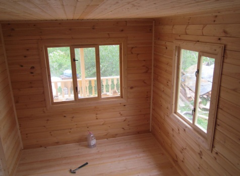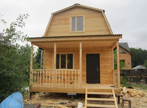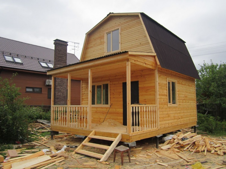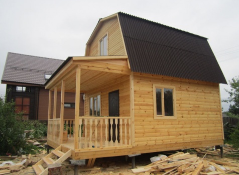 Дом 5×7 м. из профилированного бруса 100×150 (5×5 м. под ломанной крышей и открытая веранда 2×5 м.). Построен в Московской области, Солнечногорском районе, д. Маслово