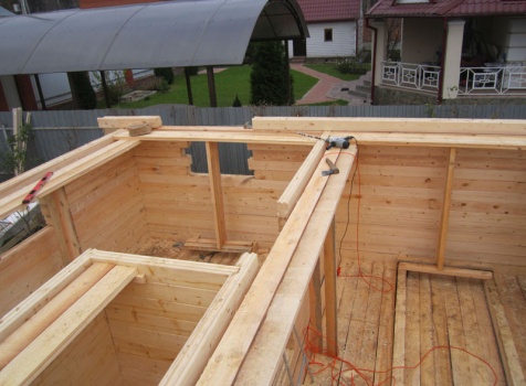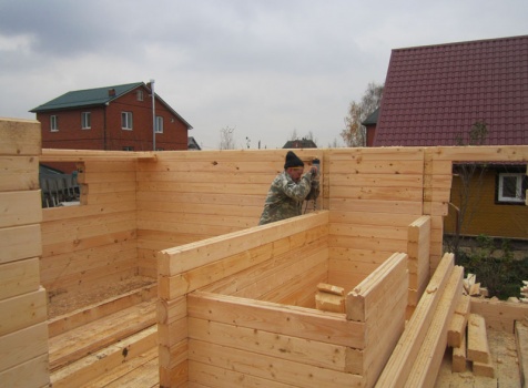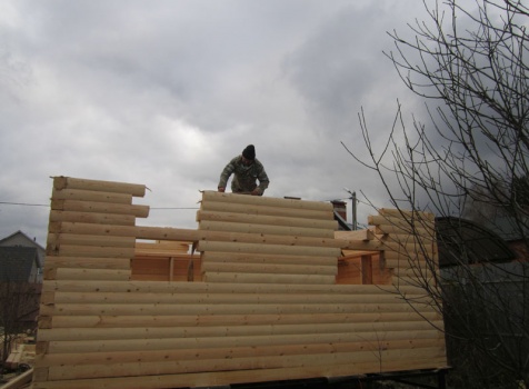 Строительство дома из бруса 6×6 м., на 16-ти сваях, по проекту Д-14.