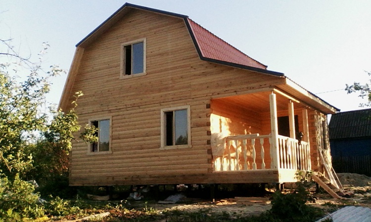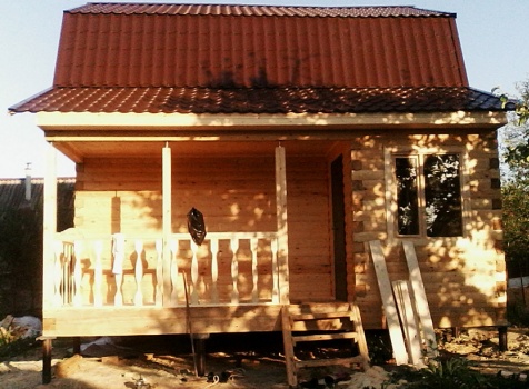 Дом 6,0×6,0 из профилированного бруса 150×150 под ломаной крышей и верандой 2,0×6,0 под отдельной односкатной крышей. Построен в г. Пенза, Первомайский р-н