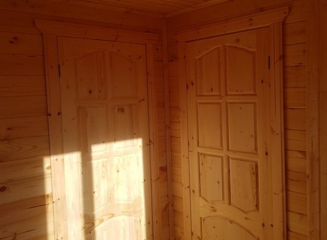Двери: 1 металл. ( Россия с ламинацией внутри) и 4 штуки филенчатые с установкой роек из бруска 40*50