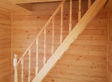 Лестница : одномаршевая с точеными балясинами ,стартовыми столбами и перилами