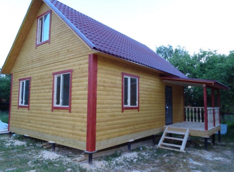Дом 6×8 из профилированного бруса 100×150 и верандой 2×3 под отдельной крышей. Построен в Калужской области, Боровский район, СНТ Восход.