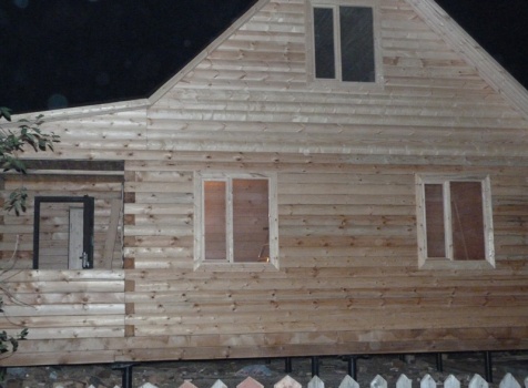 Фронтон каркасно-щитовой, высотой 3.0 м., обшитый блок хаусом.