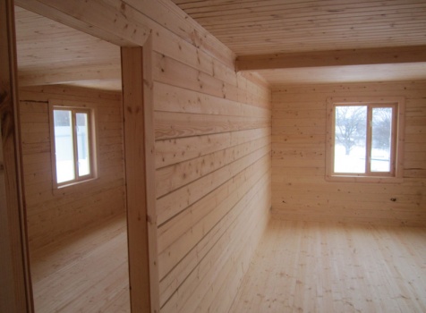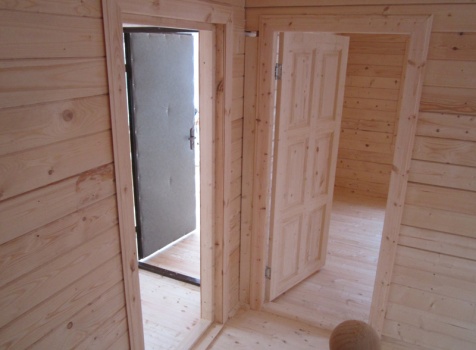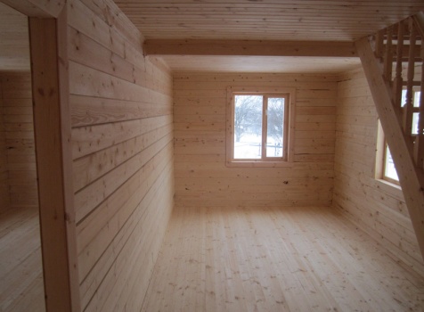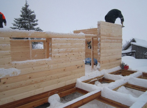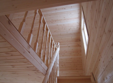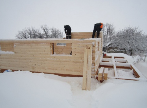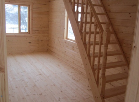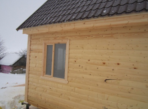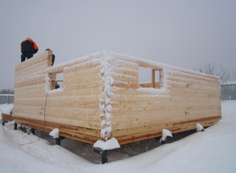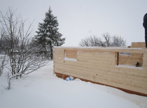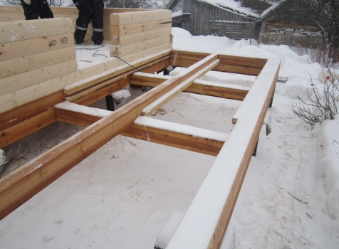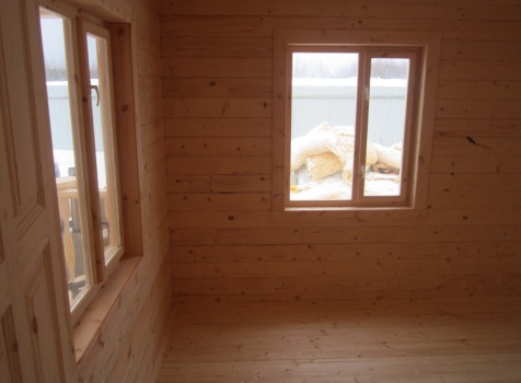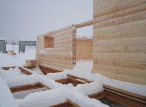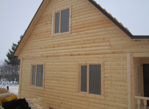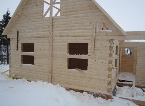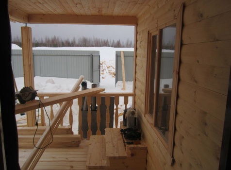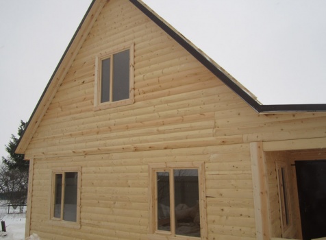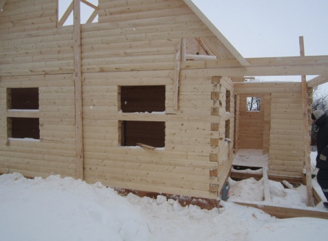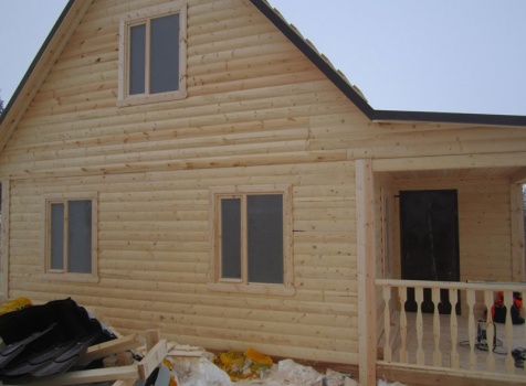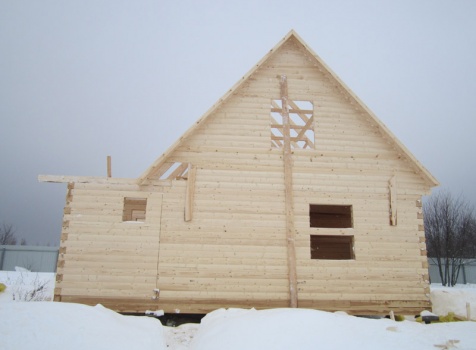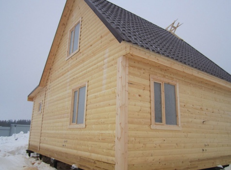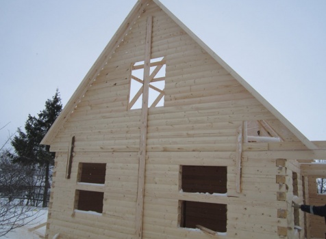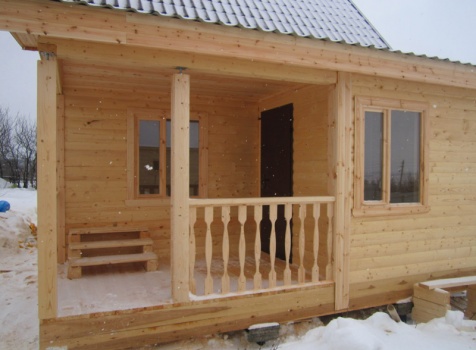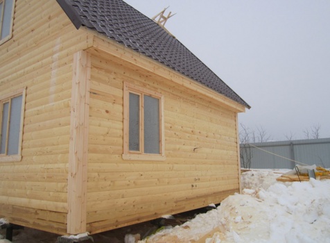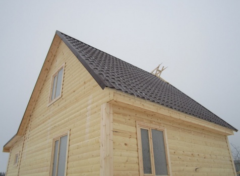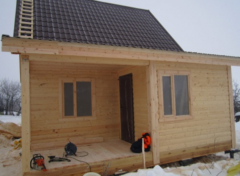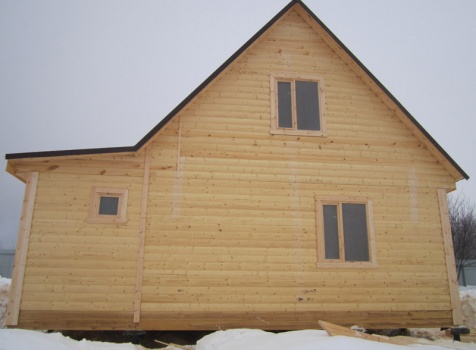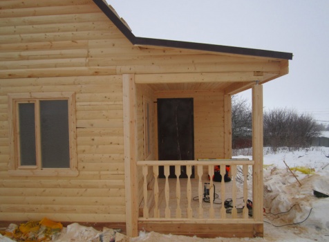 Дом из бруса общими размерами 6×8 м. по проекту Д-25 из профилированного бруса 150×150 (дом 6×6 под двухскатной крышей,открытой террасой 3×2 и брусовой закрытой террасой 3×2 под отдельной крышей). Построен в Нижегородской области, Арзамасском районе.