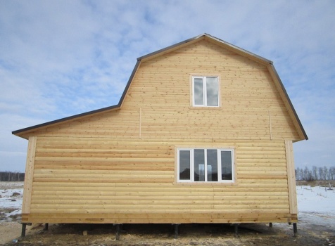 Дом 6,0х8,0 под ломаной крышей с закрытой террасой 3,0х8,0 под односкатной крышей из профилированного бруса 200х150 построен в Московской обл., Воскресенский р-н. На сайте проект Д-139 с изменениями.