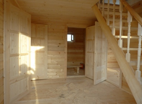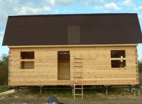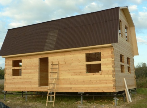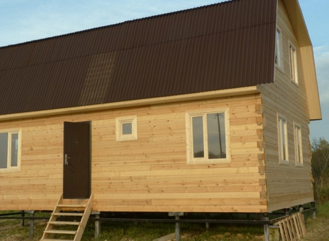 Дом 6×9 из профилированного бруса 150×150 под ломанной крышей. Построен: Московская область, Серебрено-Прудский район.