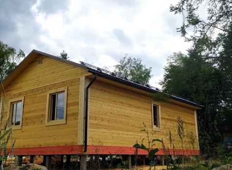 На строительства дома общими размерами 7.20×10.0 ( 7.20×4.50 и 6.0×5.50 с 3- мя фронтонами под двухскатной крышей из профилированного бруса (Камерной сушки) и терраса 1.20×5.50 под отдельной односкатной крышей.