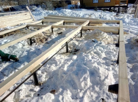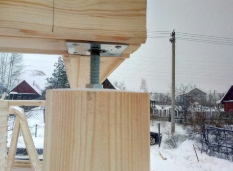 терраса 2,0х7,0 открытая с резными балясинами со строгаными столбами 150х150 с установкой усадочных болтов