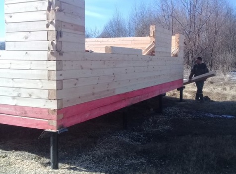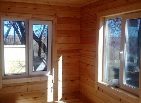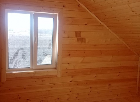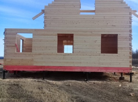 Дом 8.0*8.0 из профилированного бруса 150*150 (5.50*8.0 полутораэтажный дом с брусовыми фронтонами под двухскатной крышей и веранда ,одноэтажная,2.50*8.0 из профилированного бруса 150*150, под отдельной двухскатной крышей). Объект построен: Калужская область,р-он Мещовский, с. Новоселки, ул. Камышовая, д. 8А.