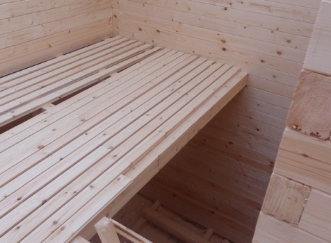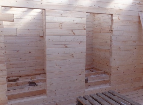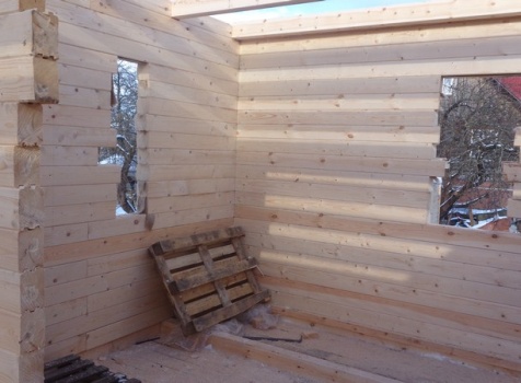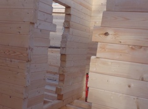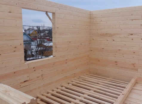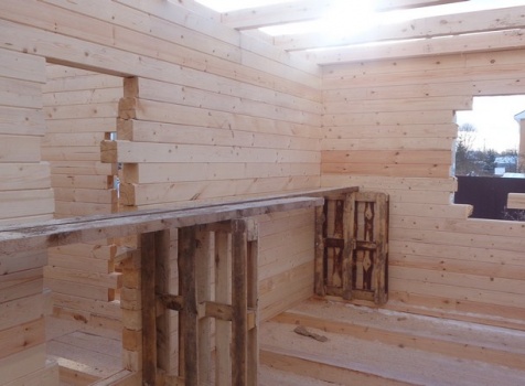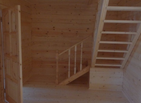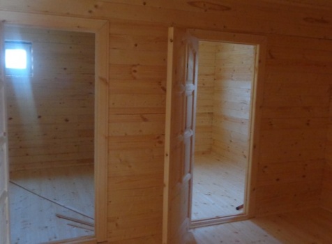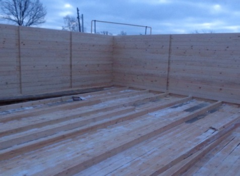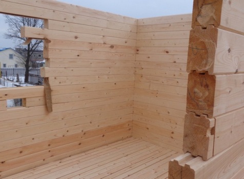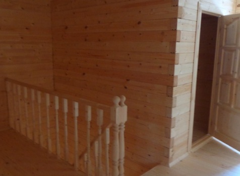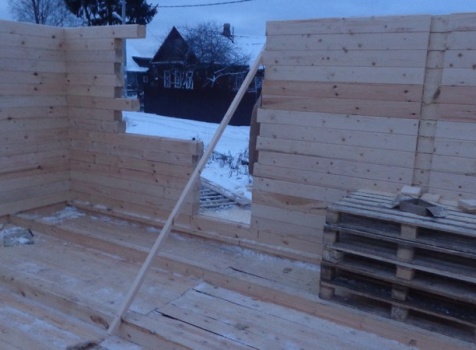 Перегородки первого и второго этажа: из профилированного бруса 100×150, сборка на гвозди в тёплый угол (тёплый угол в подарок).