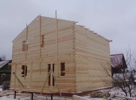 Второй этаж размерами 8.0×9.0 из профилированного бруса 150×150 сборка на гвозди в тёплый угол (тёплый угол в подарок) 18 венцов, высотой 2.45-2.50м.