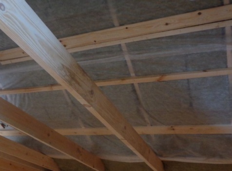 Потолок первого и второго этажа обшит вагонкой класса «В» 16 мм с утеплением в 100мм (Технониколь) с проложкой парогидроизоляции в два слоя.