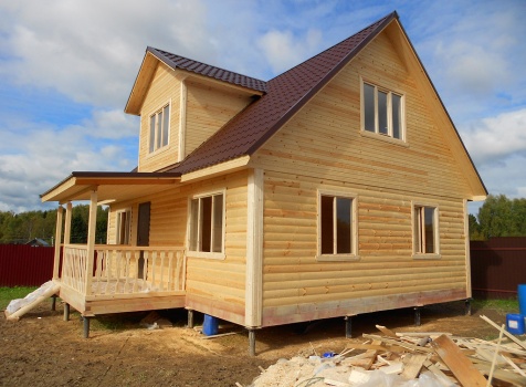 Дом общими размерами 9,0×9,0 (7,0×9,0 дом и терраса 2,0×4,0) из профилированного бруса 100×150. Построен в Московской области, Волоколамский р-н