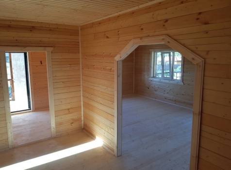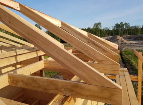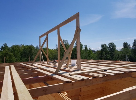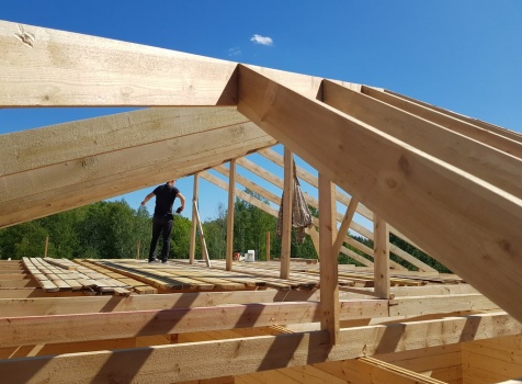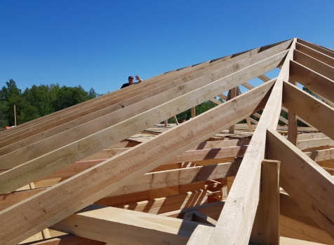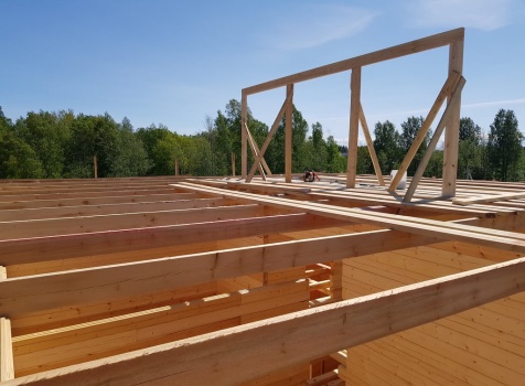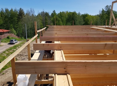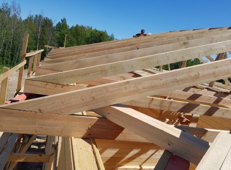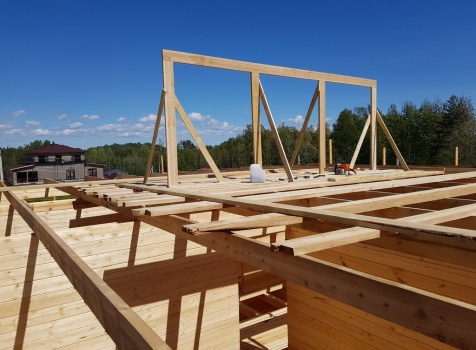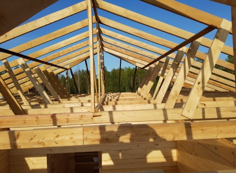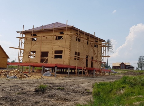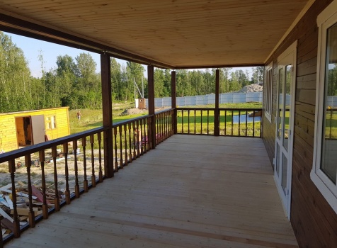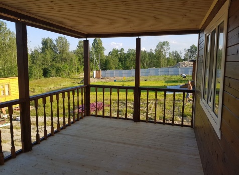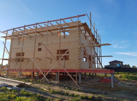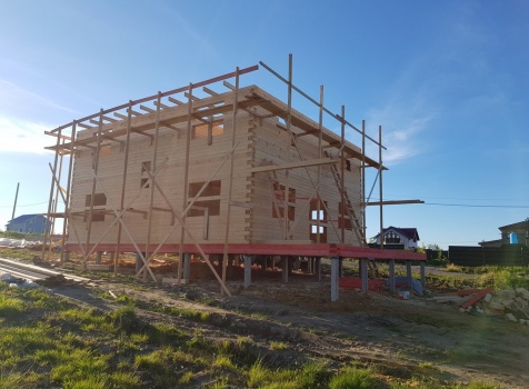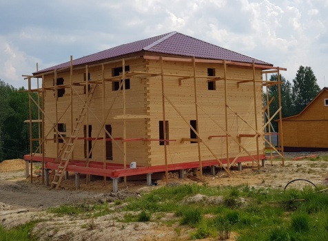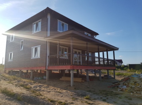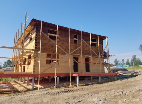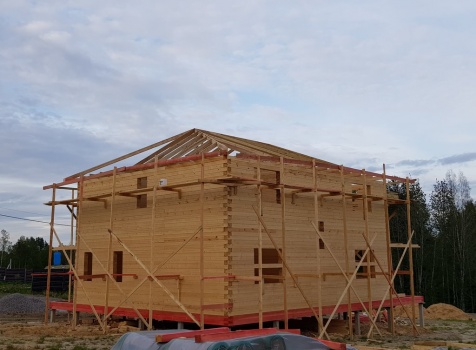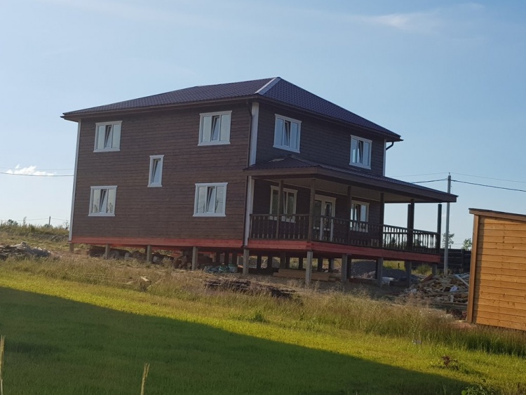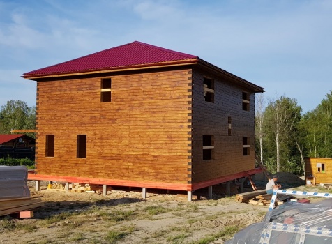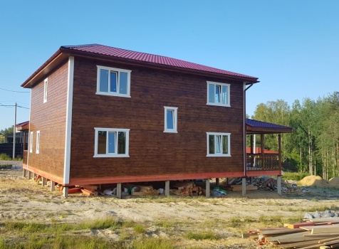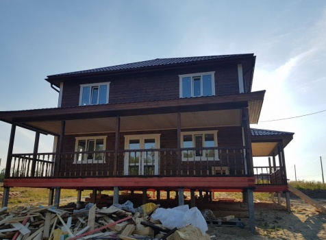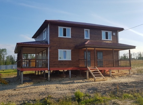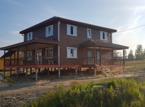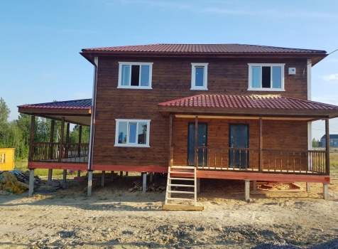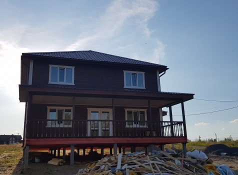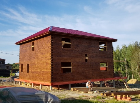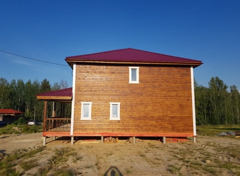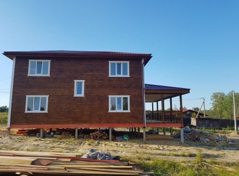 Двухэтажный дом общими размерами 13.50*11.50 (10.50*9.50 из профилированного бруса 140*190 Камерной сушки под четырехскатной крышей), открытая терраса 3.0*9.50 под отдельной односкатной крышей со скошенными краями и открытое крыльцо 2.0*6.50 под отдельной односкатной крышей со скошенными краями. Объект построен: Ленинградская область, Всеволожский район, п. Новое Токсово, СНТ"Защита", уч.782-5,783-5.