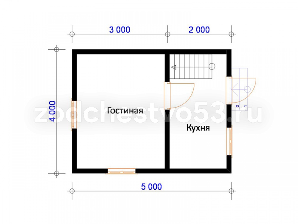 Проект Д-1. Дом из сухого бруса 4х5 м.