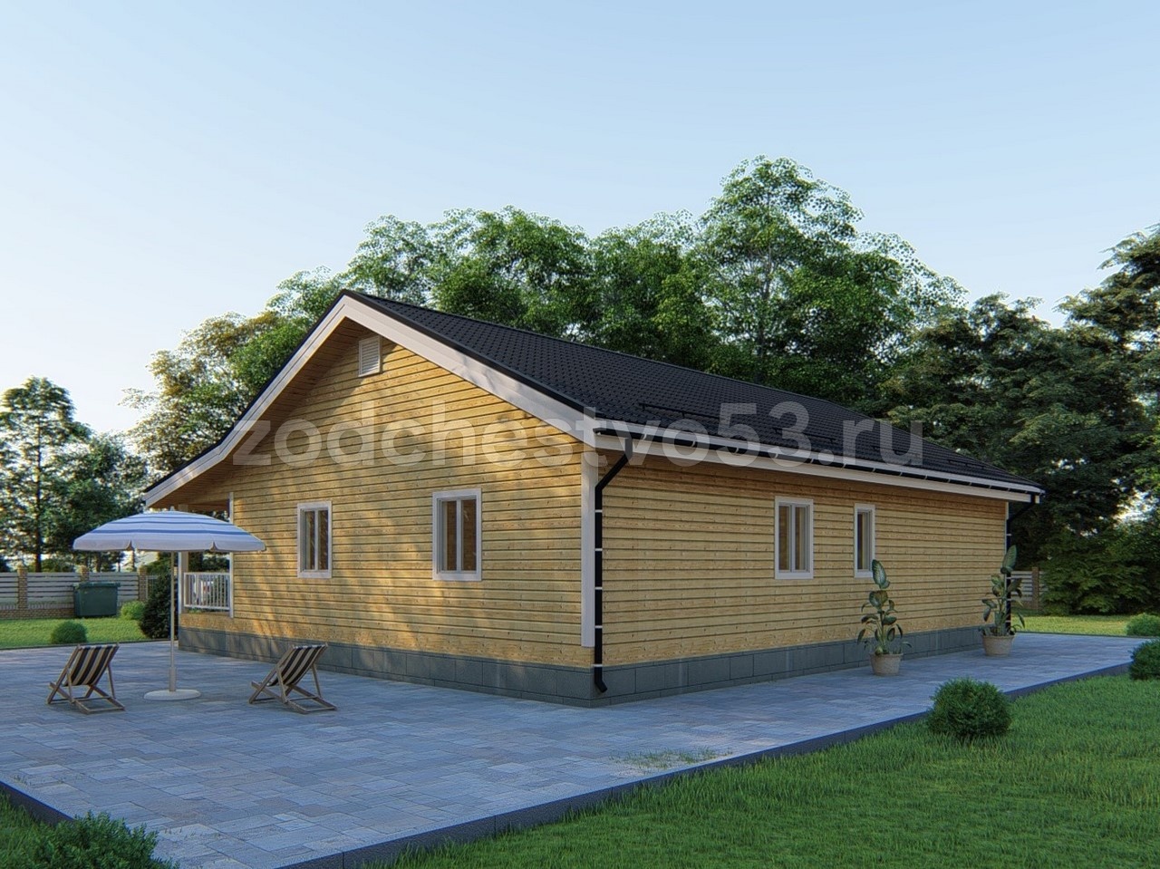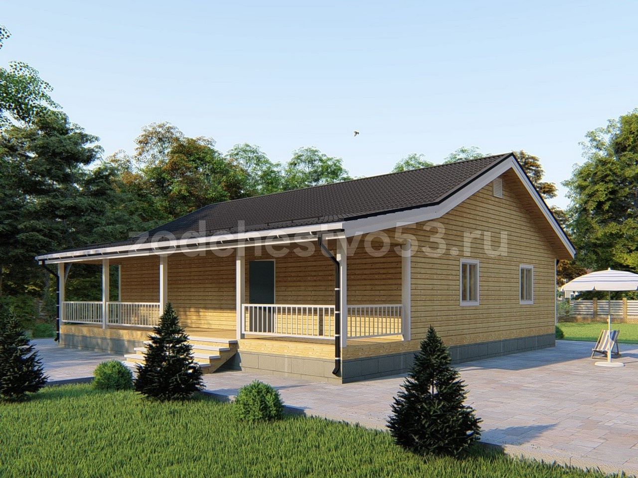 Проект Д-174. Дом из сухого бруса 10х14 м.