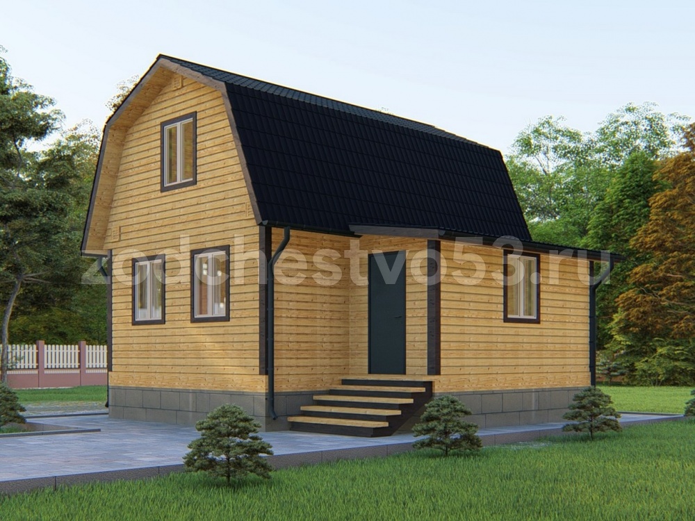 Проект Д-180. Дом из сухого бруса 7х7 м.