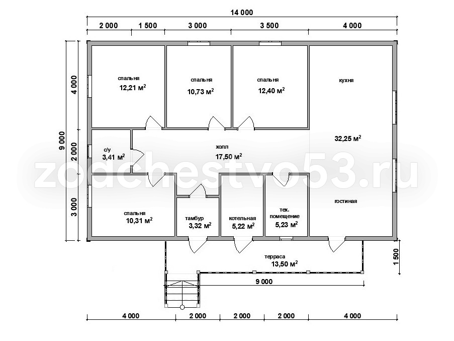 Проект Д-19. Дом из сухого бруса 9х14